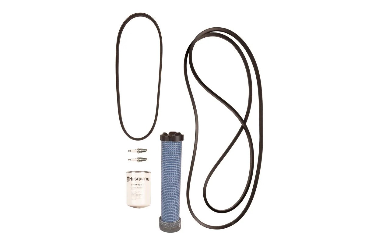 Underhôllskit avec préfiltre, bougies d'allumage, filtre huile hydraulique, courroie d'embrayage et courroie de pompe hydraulique - tous les 400 heures
